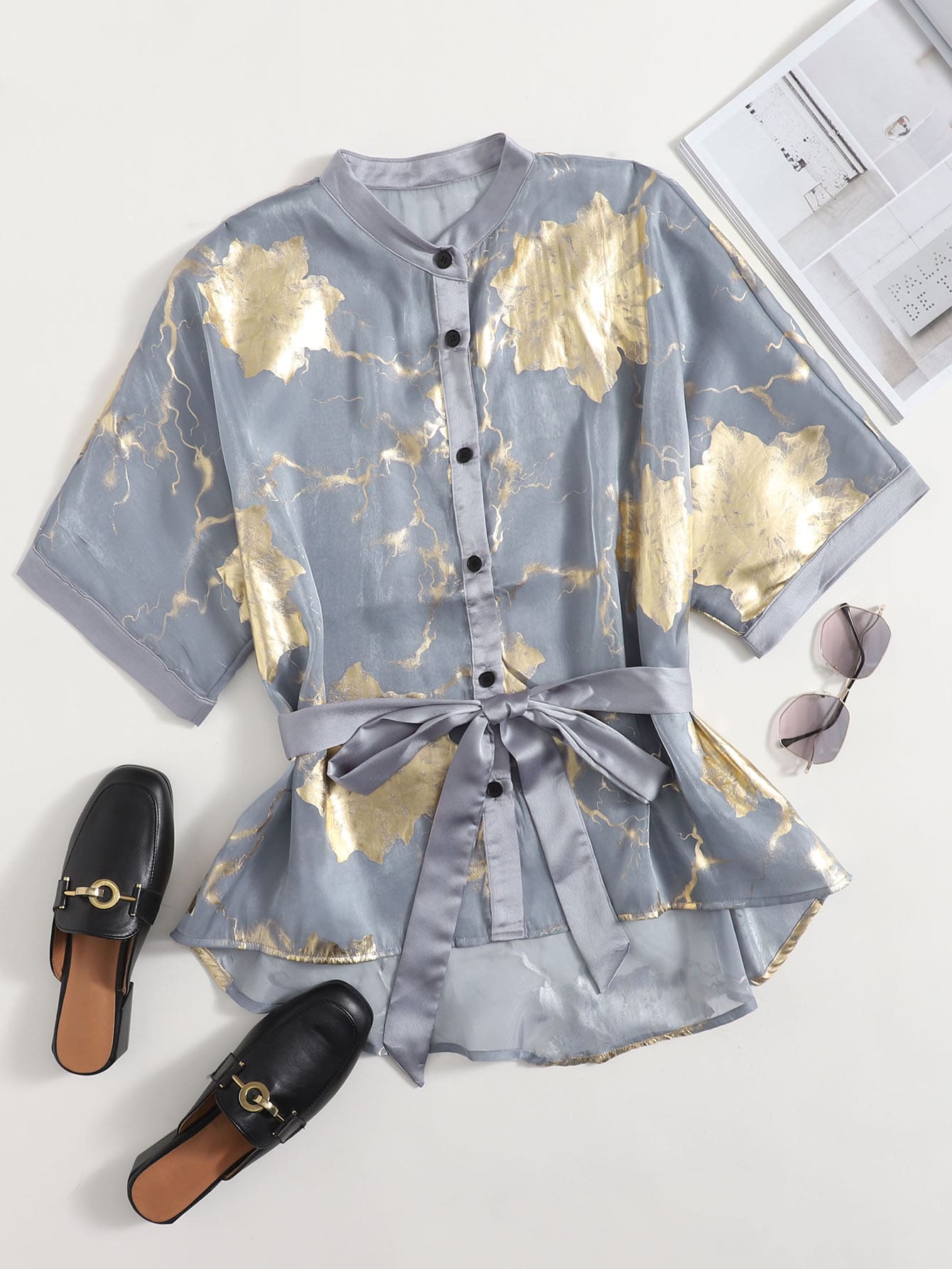 Glitter Organza Belted Blouse