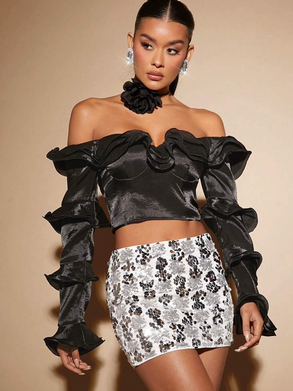 Women's Beaded Pearl Detail Off Shoulder Crop Top