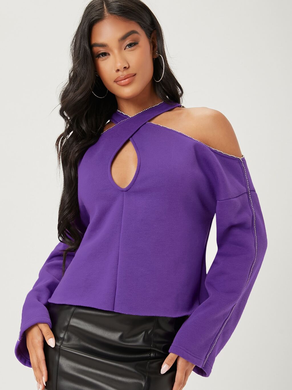Rhinestone Crisscross Cold Shoulder Top