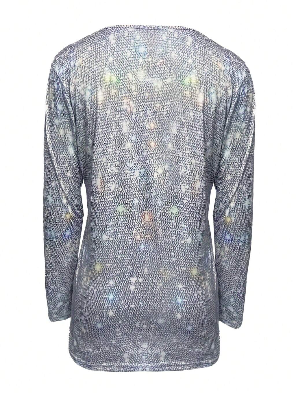 Ladies' All-Over Printed V-Neck Shirt Winter Casual