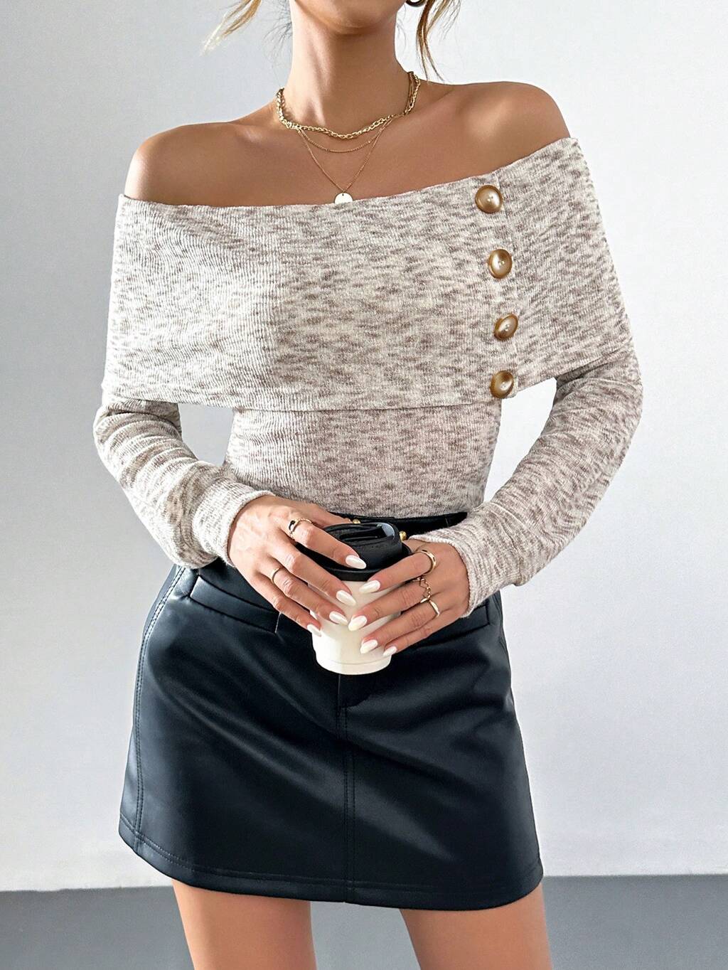 Off-shoulder Button Detail T-shirt