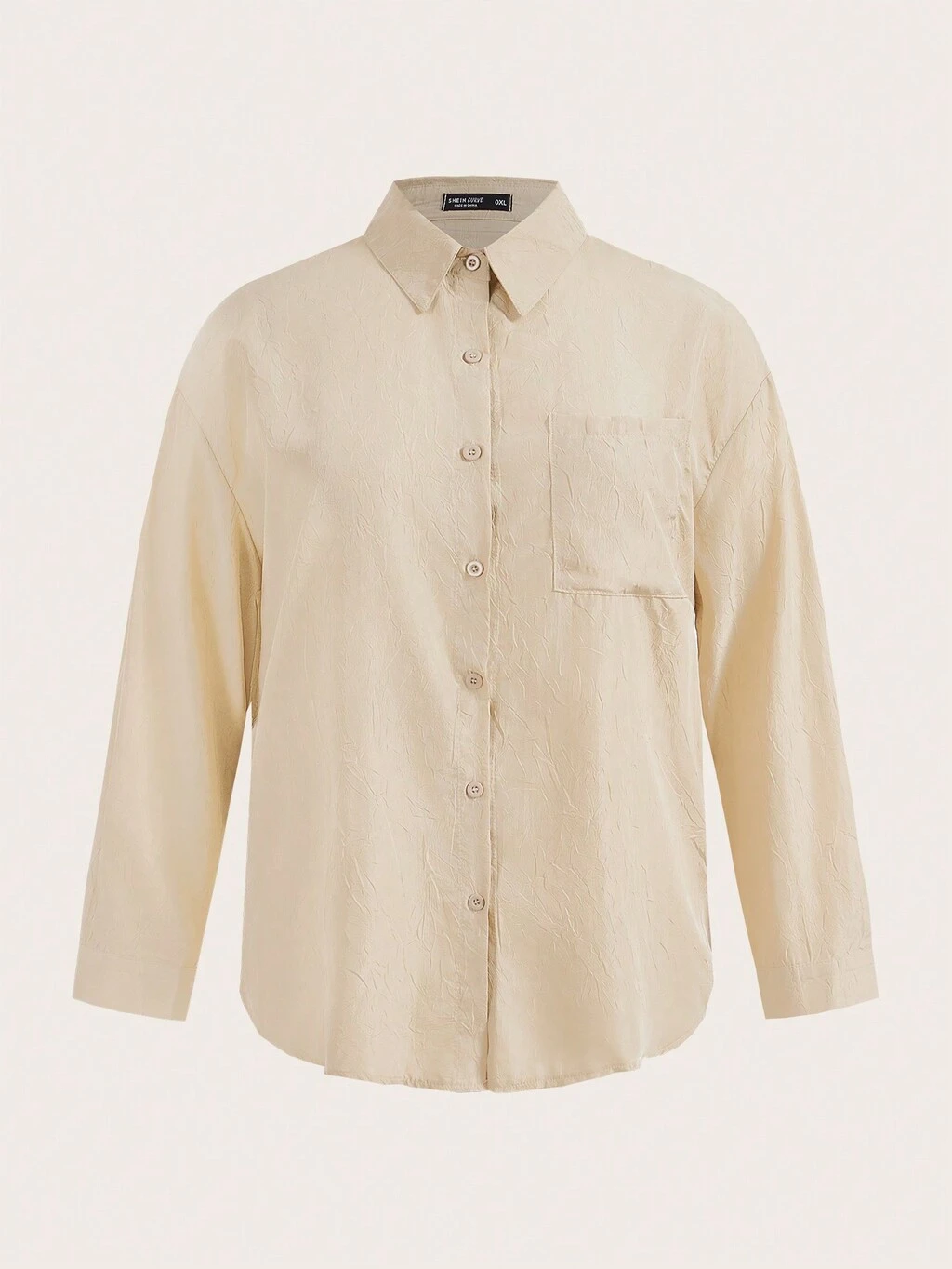Loose-fit Casual Long Sleeve Shirt With Printed Patchwork And Stitching Detail