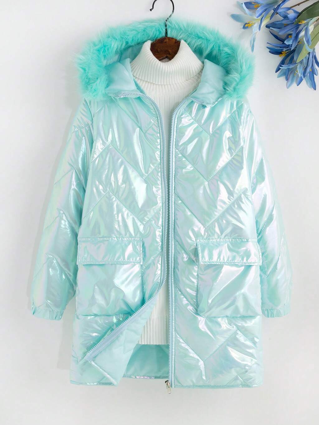 Tween Girls' Colorful Trimmed Hooded Cool & Sweet -padded Coat For Autumn And Winter