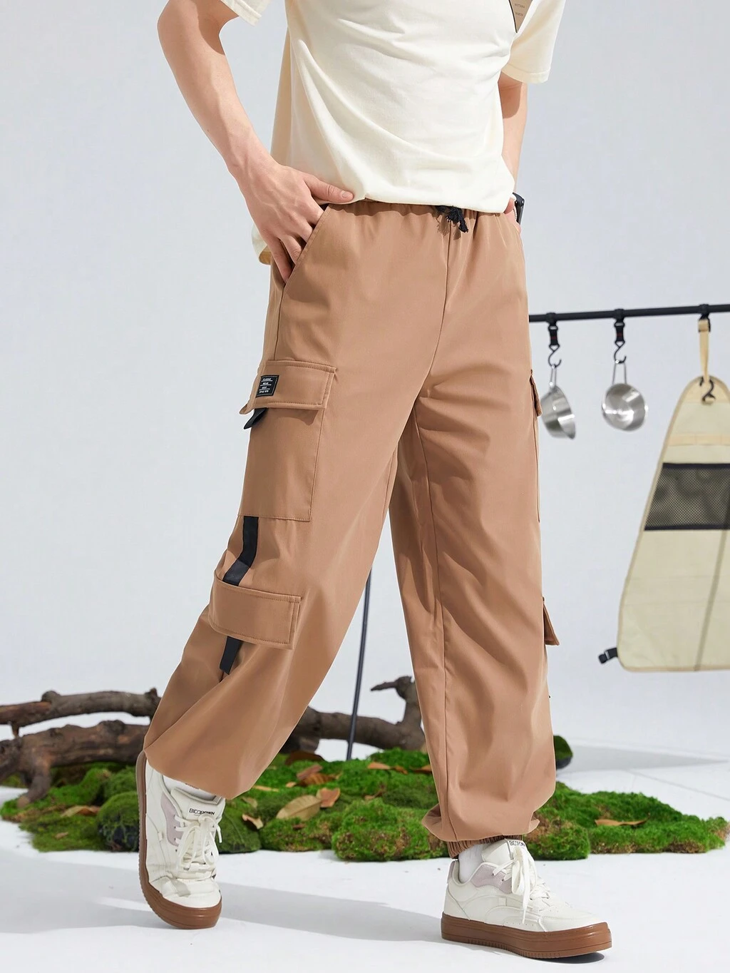 Teen Boy Flap Pocket Side Drawstring Waist Cargo Pants
