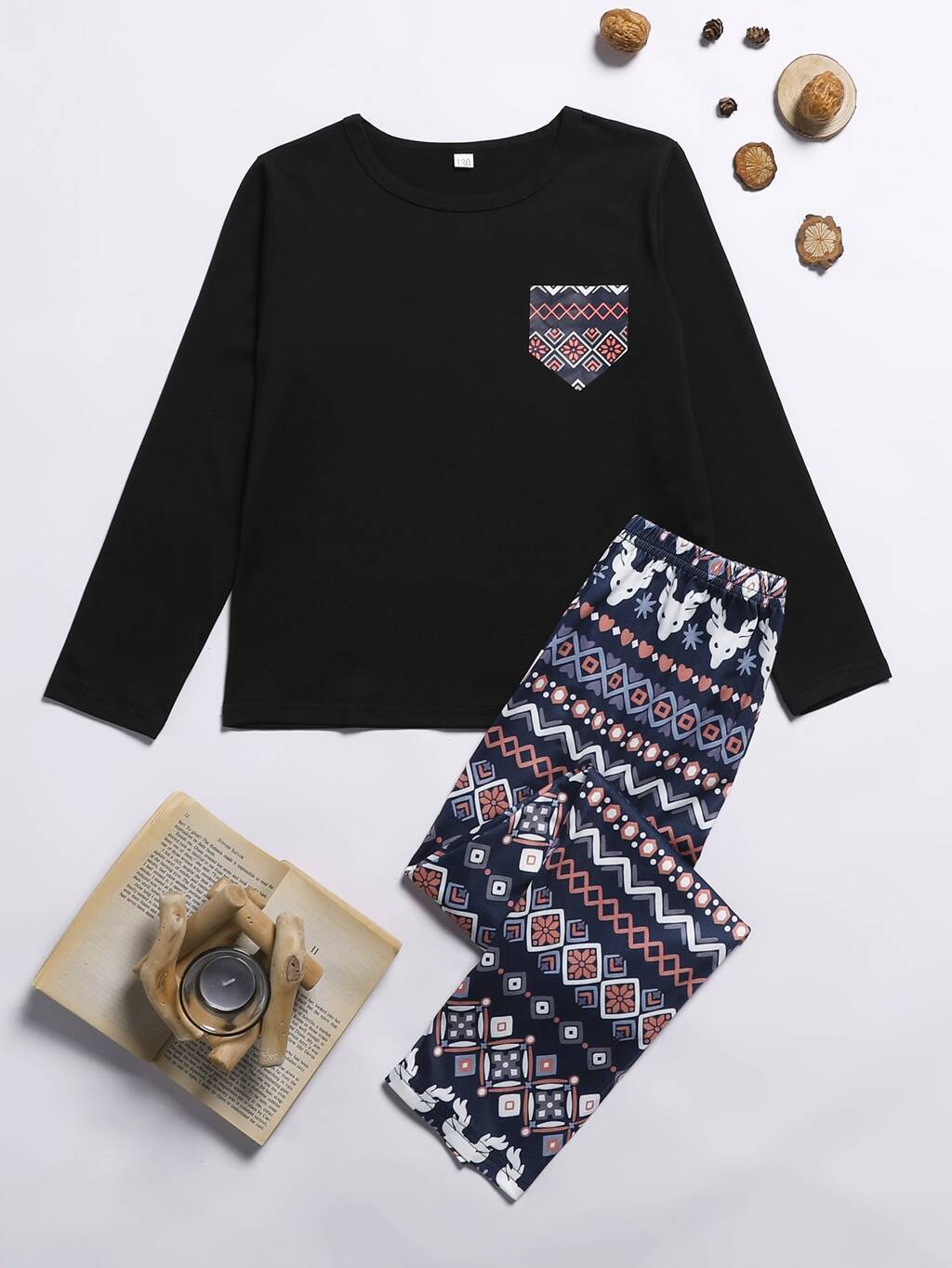 Tween Girl Geometric Pattern Long Sleeve And Long Pants Pajamas Set