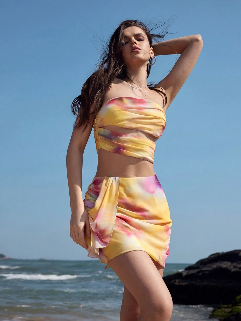 Women's Tie-Dye Ruffle Strapless Top And Skirt Two-Piece Set