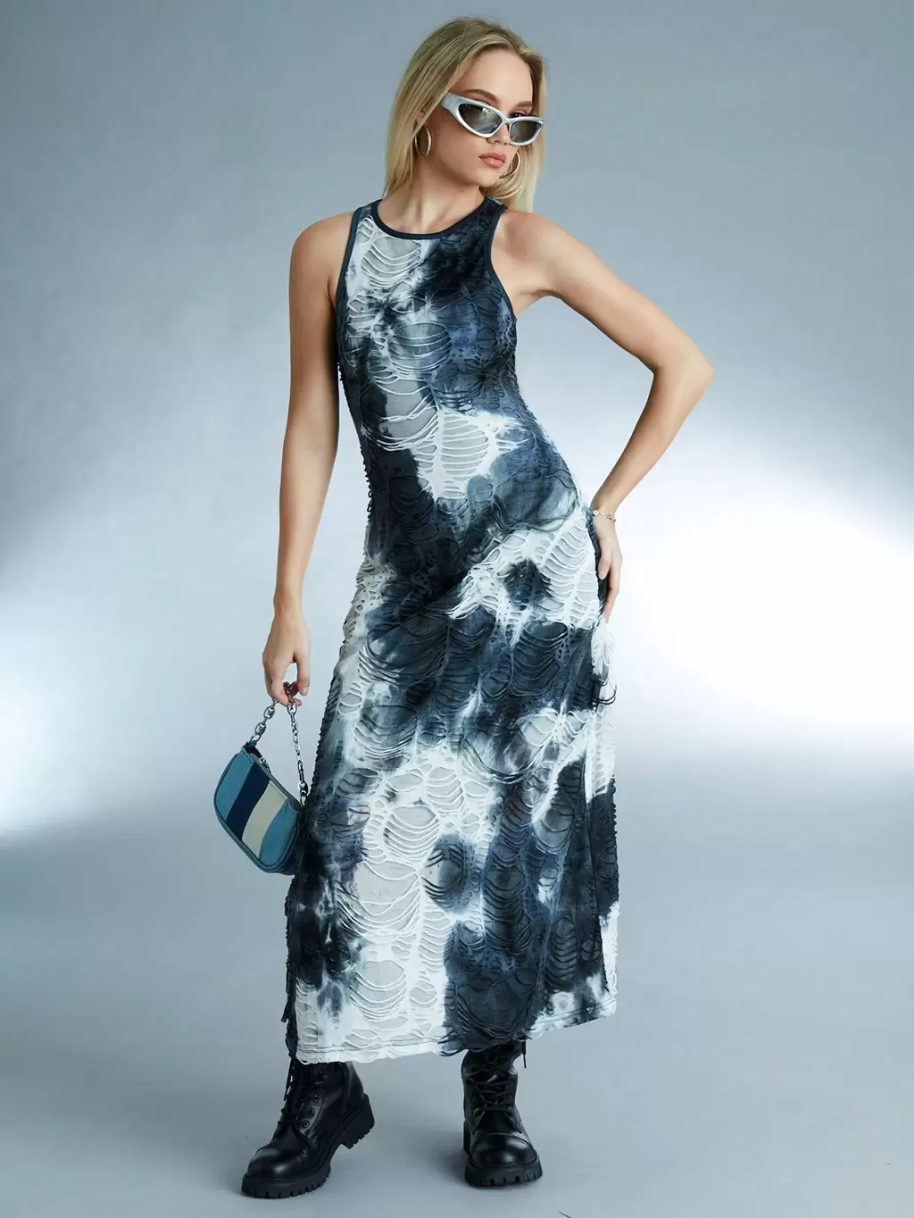 Summer Fashion Club Tie-Dye Sleeveless Ripped Mini Dress