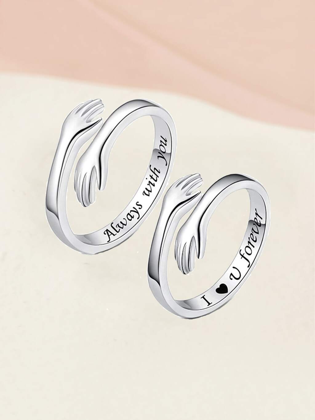2pcs Couple Slogan Detail Hand Design Cuff Ring