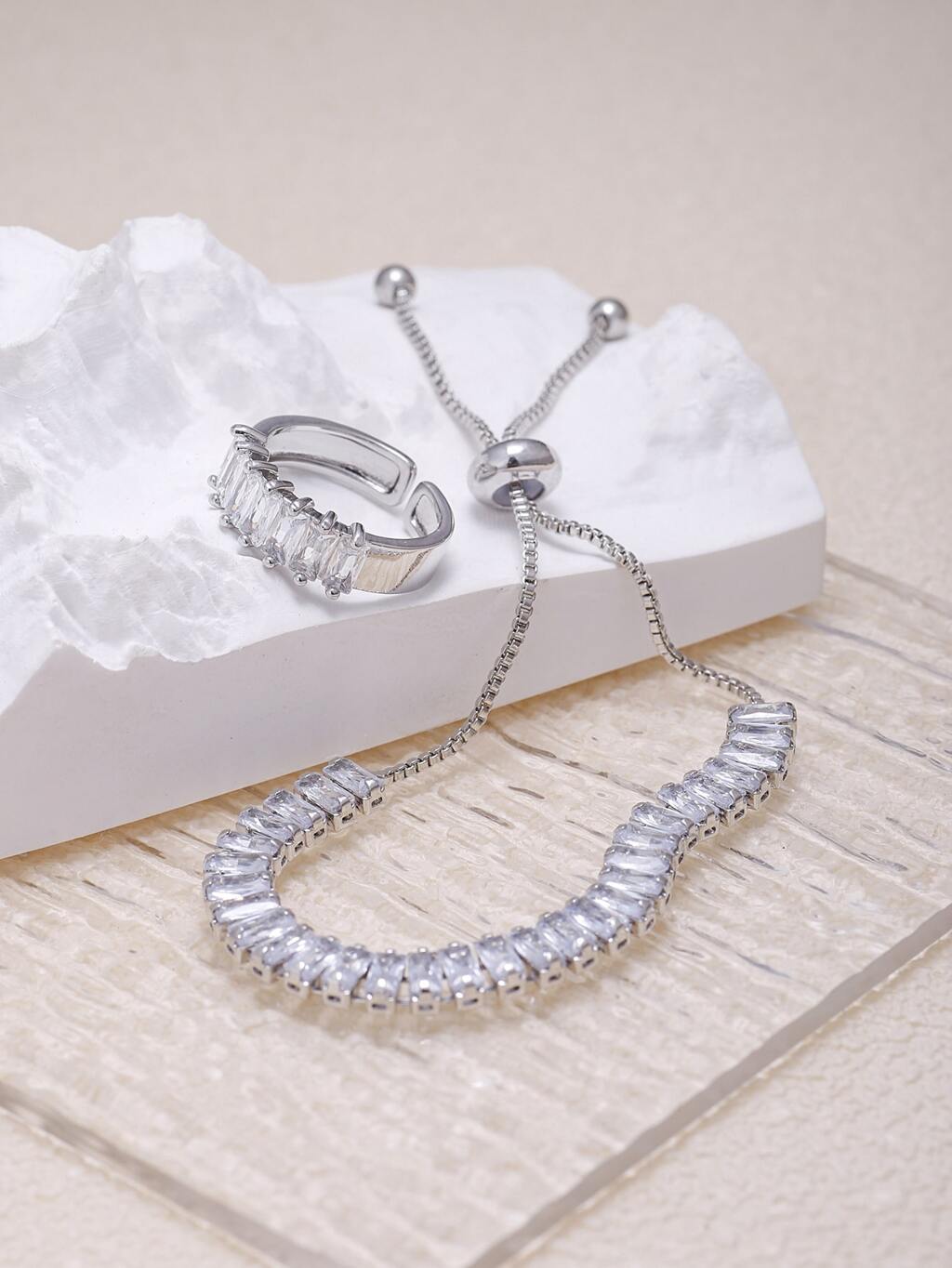 Cubic Zirconia Decor Bracelet & Ring