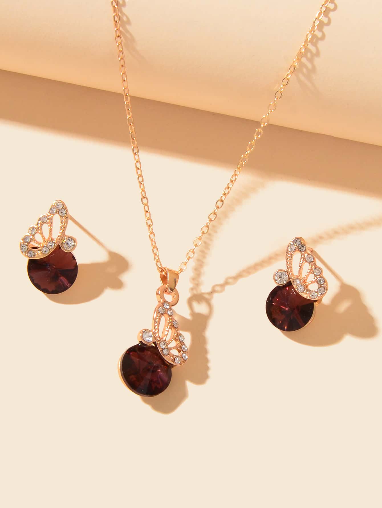 3pcs Rhinestone Butterfly Decor Jewelry Set