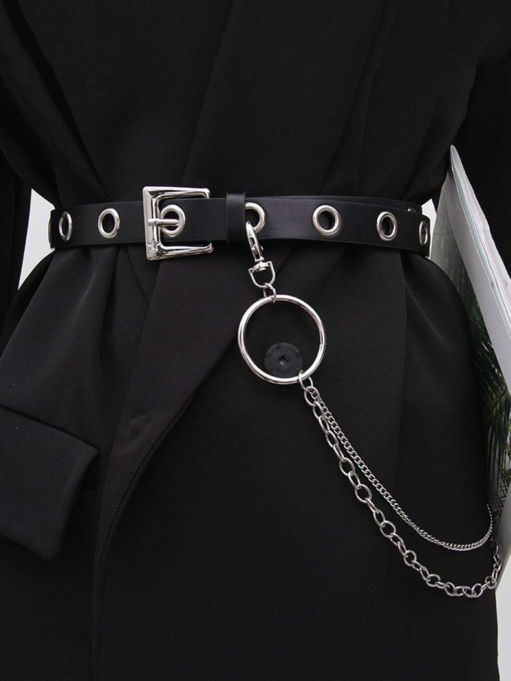 Pasek z geometryczną klamrą dla kobiet i łańcuszek do spodni w stylu street, idealny na Halloween, lato, jesień, szkołę, Halloween