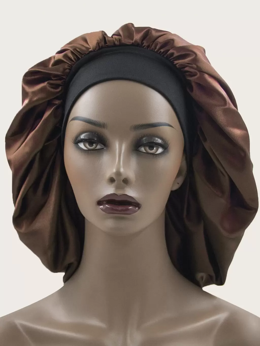 Awegeo 1 szt. Damska duża satynowa czepek do spania – jednokolorowa elastyczna czepek do pielęgnacji włosów z szerokim rondem, miękka, oddychająca, jedwabista tkanina, antypoślizgowa, wygodna konstrukcja, odpowiednia do użytku nocnego i codziennego, prezent na Dzień Matki