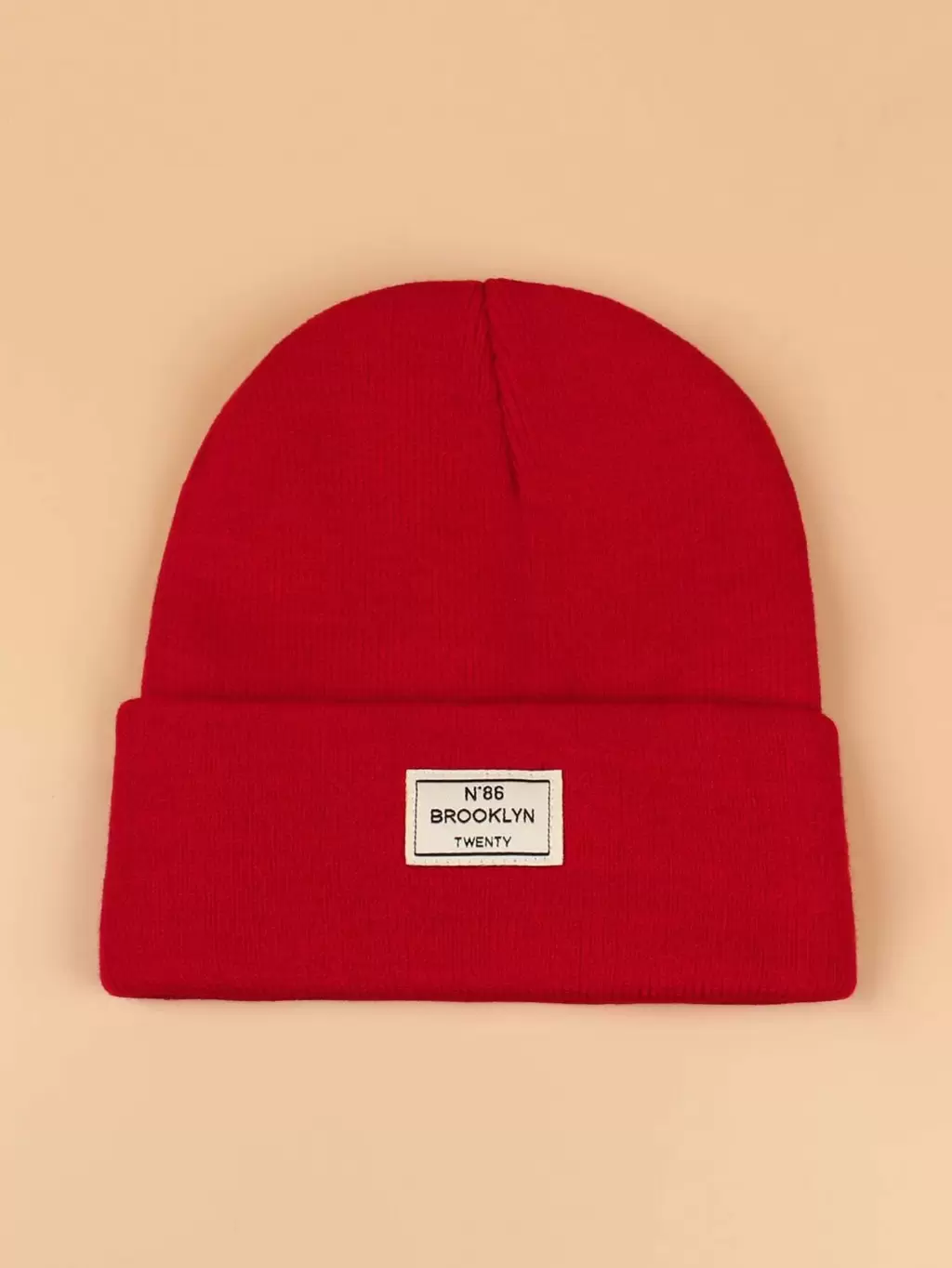 Dzianinowa czapka z napisami i grafiką na co dzień