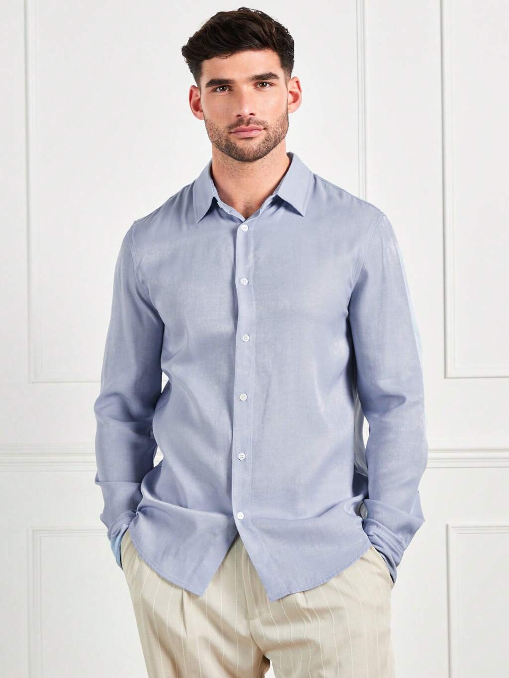 Camisa Casual Masculina De Manga Longa Azul Claro