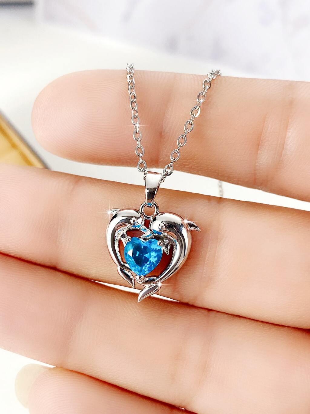 Colar com Pingente de Coração e Golfinho de Cubic Zircônia, Dia dos Namorados, Dia das Mães, Presente